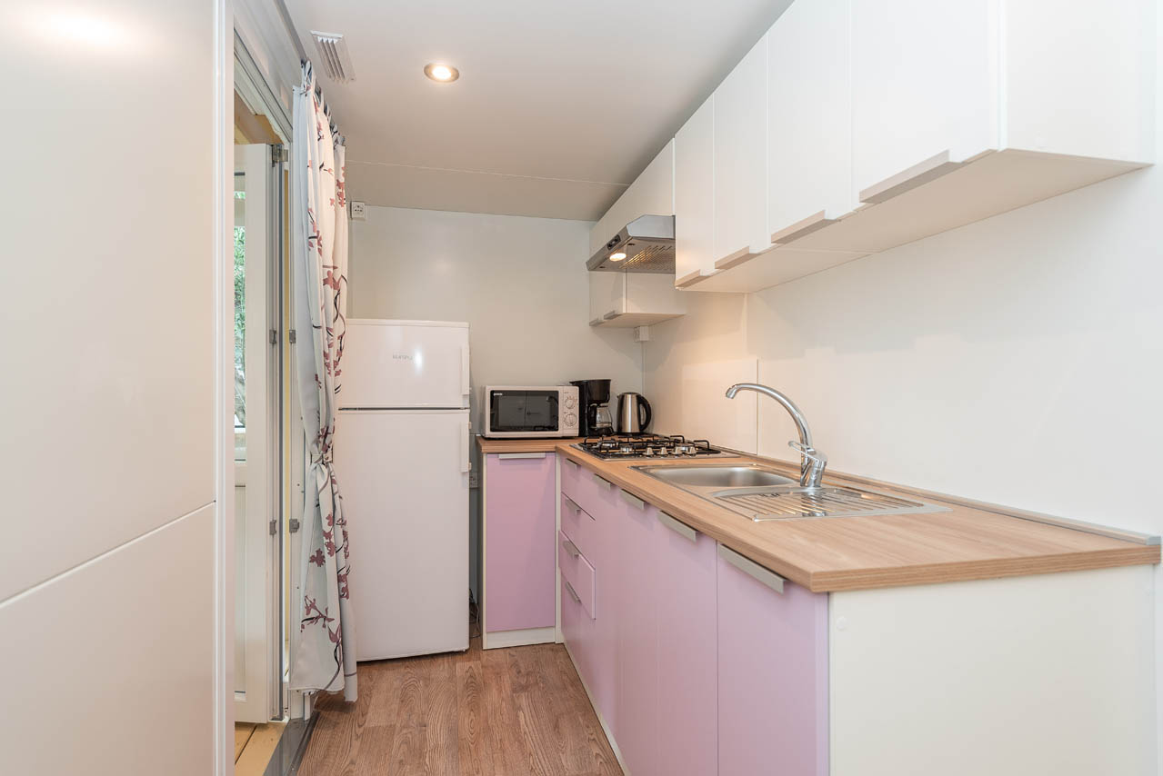 Mobilheime ADRIA haben 54 m2. Sie verfügen über zwei Schlafzimmer, ein Doppelzimmer und ein separates Zimmer mit zwei Einzelbetten. Im Wohnzimmer befindet sich eine Sitzecke, die als Zustellbett für noch zwei Personen genutzt werden kann. Mobilheime ist geräumig und verfügt über ein großes Wohnzimmer, eine modern ausgestattete Küche und ein Bad mit Dusche. Das Haus ist mit SAT-TV, Klimaanlage zum Heizen und Kühlen und Highspeed-Internet ausgestattet.